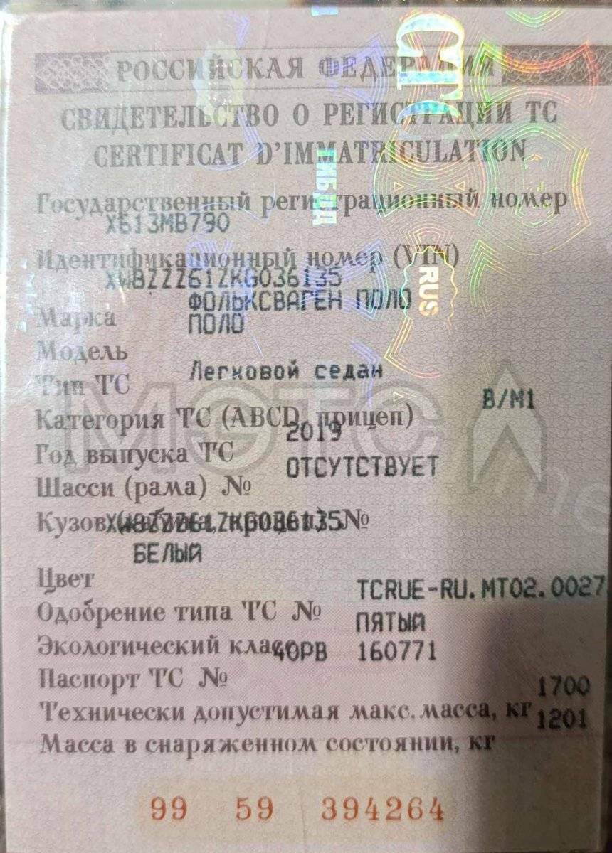 Транспортное средство: Volkswagen Polo, идентификационный номер (VIN номер): XW8ZZZ61ZKG036135, год изготовления: 2019, гос.номер Х613МВ790.